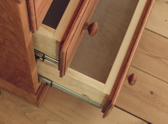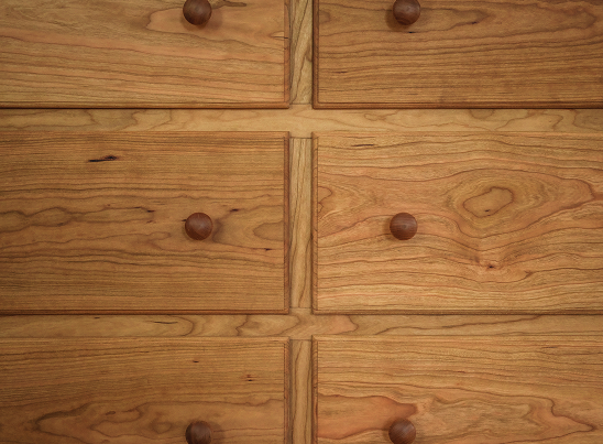 Cherry will get substantially richer and darker over time depending on the UV exposure. Depending on UV exposure, it can take up to a year to reach the deep red that is so desirable. Walnut actually gets slightly lighter over time though it is less noticeable.