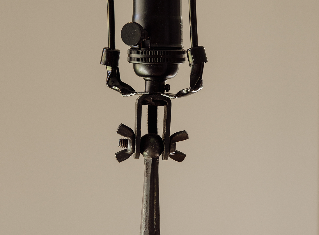 The lamp is shaped with heat and hammer strikes, meaning each one is unique and the forge marks are part of the lamp's appeal.