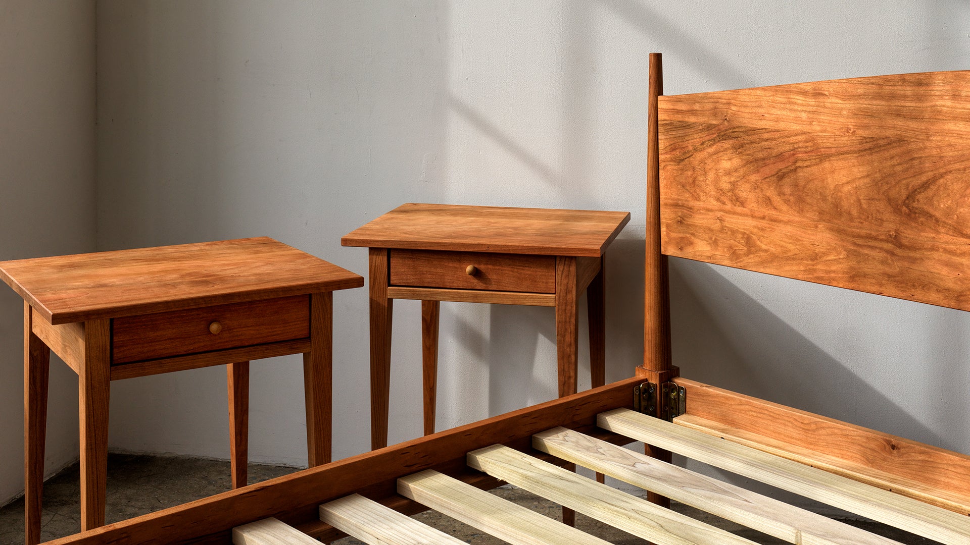 Complete your bedroom set with our matching nightstand, crafted from solid American cherry or walnut and finished the same as our bed. Its timeless Shaker design blends simplicity and elegance.