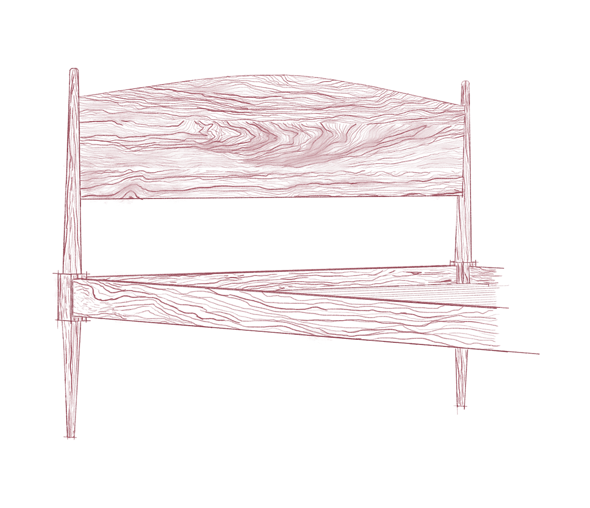Inspired by the sparse beauty of Shaker dormitories at Hancock Village, MA, our bed is crafted from solid American Cherry or Black Walnut. The design philosophy is slow and sturdy, with single-stave rails and posts, and a ¾-inch-thick headboard made from three carefully selected boards.
